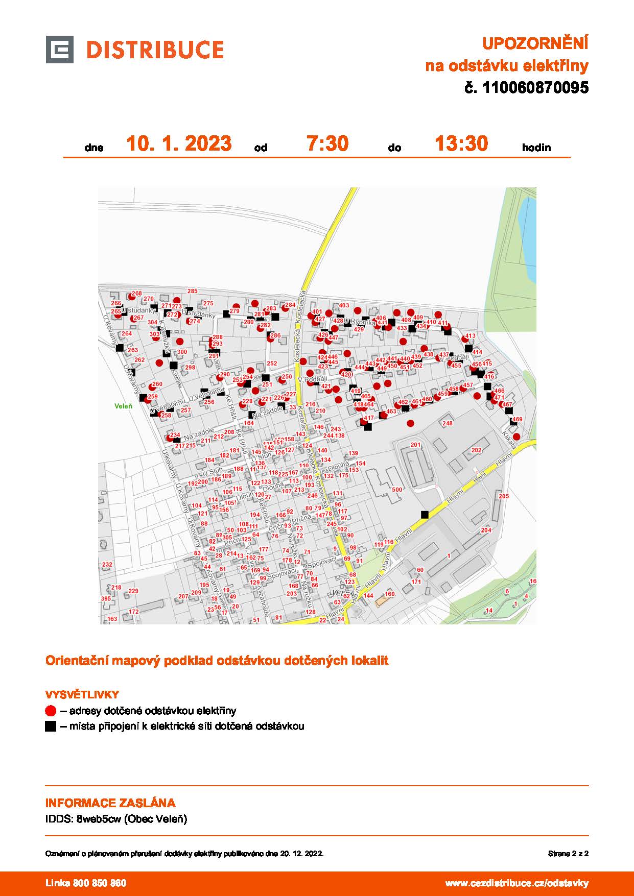 Upozorňujeme na odstávku dodávky el. proudu dne 10. ledna 2023 dle informace ČEZ Distribuce.