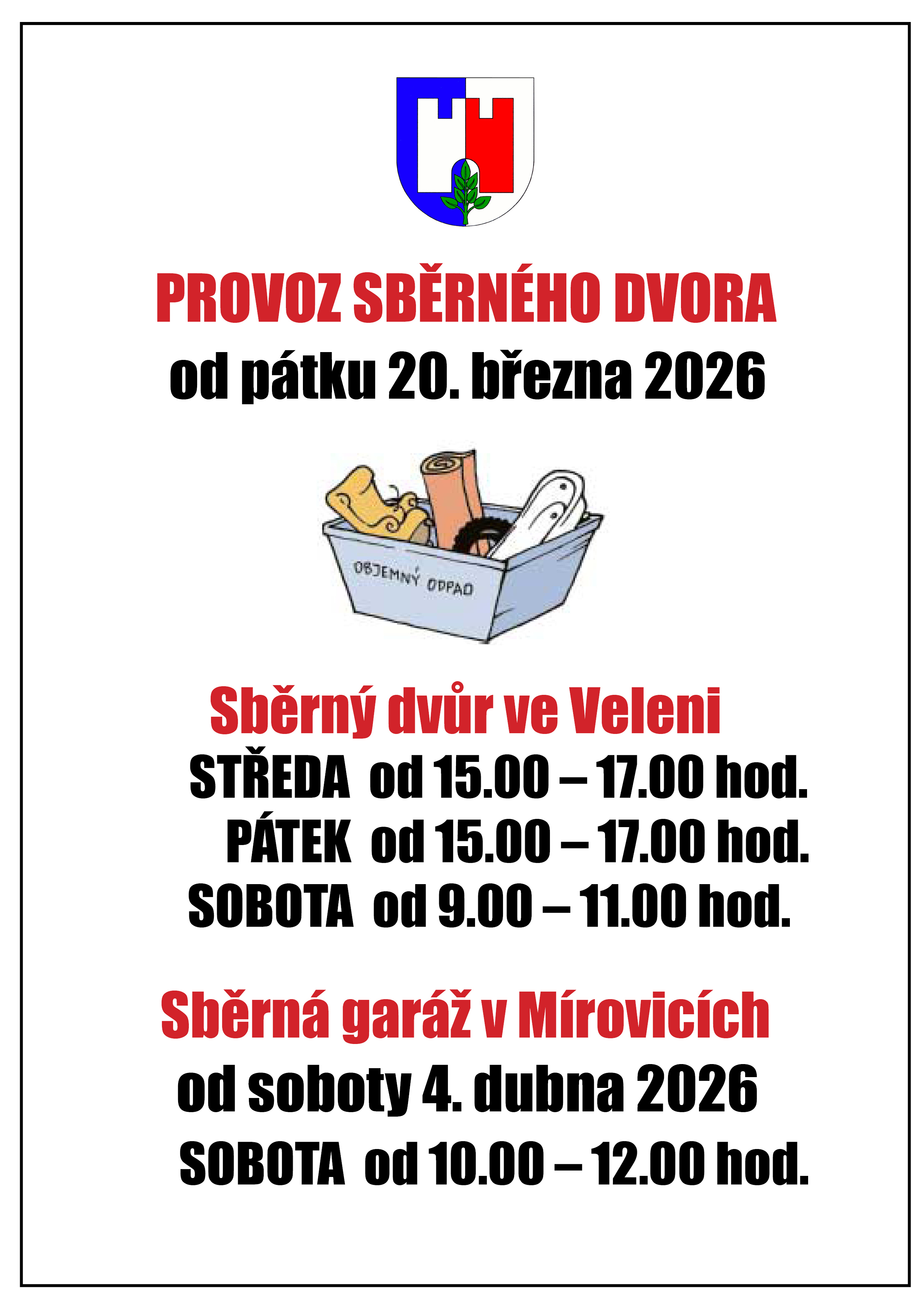 Otevření sběrného dvora od 20.března 2026