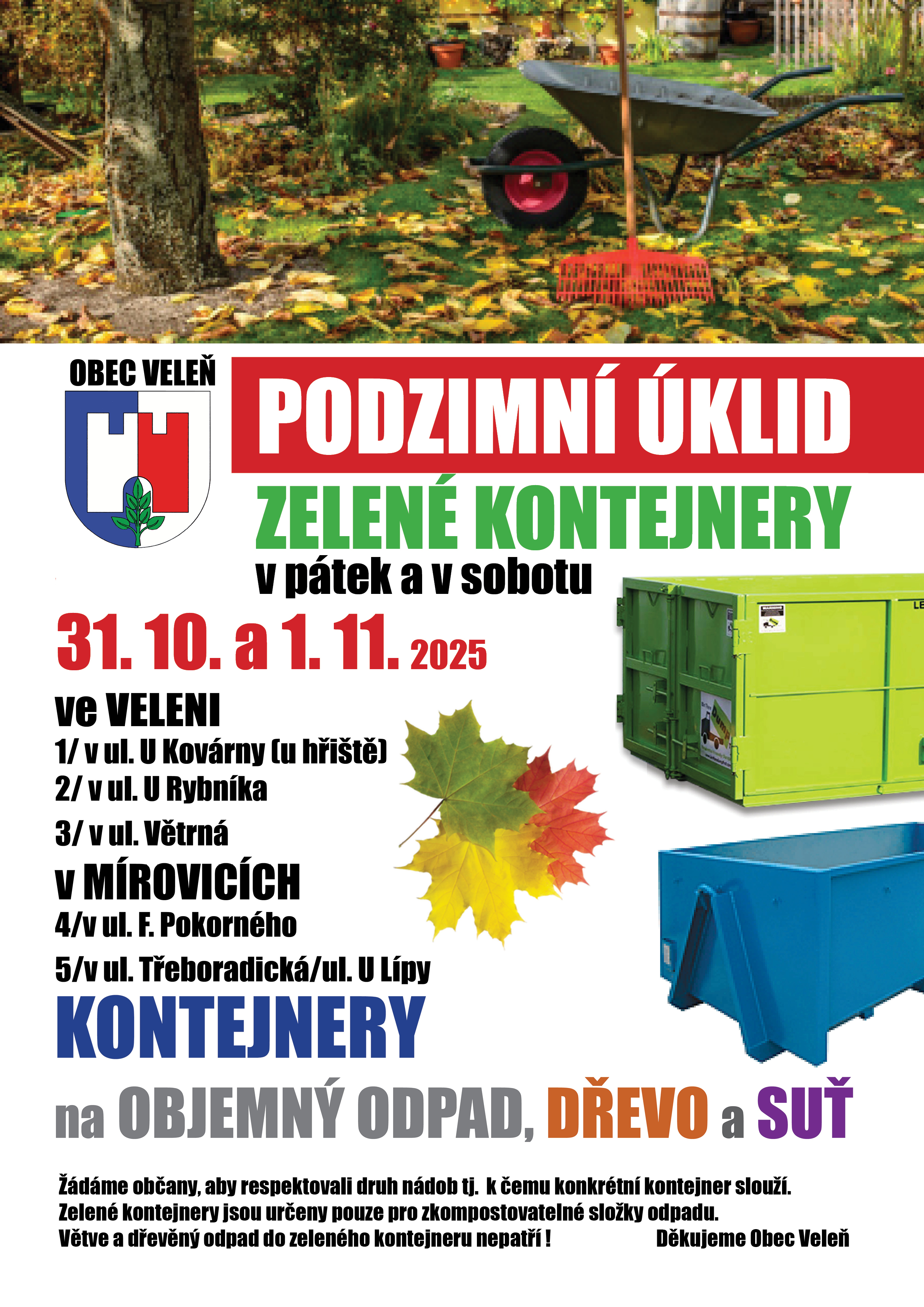 od pátečního rána jsme rozvezli po naší obci kontejnery na zeleň, suť, dřevo a objemný odpad.