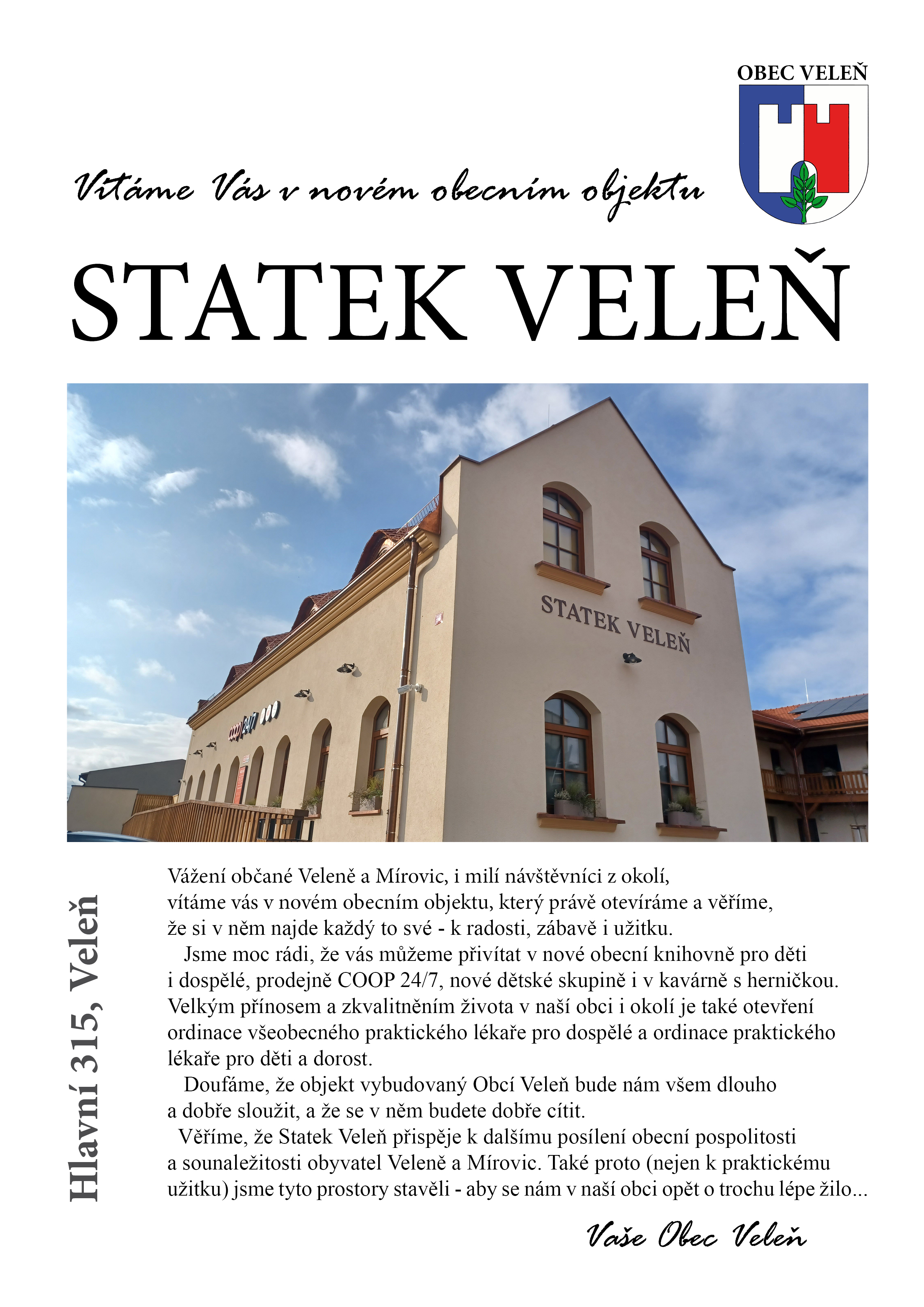 Ještě info a kontakty pro ty, kteří se nezúčastnili sobotního otevření Statku Veleň, a neodnesli si informace papírové... .